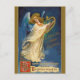This postcard features a vintage illustration of an angel playing a harp along with Christmas messages.