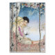 A vintage book illustration by Florence Mary Anderson depicts a beautiful blonde angel or fairy in profile sitting next to a young man with dark hair who is clearly entranced and infatuated with her. They sit on a bed of pink roses with a blue cloud-filled sky in the background. A flock of tiny fairies is fluttering above them. It looks like love! The English artist, Florence Mary Anderson (1874-1930) also illustrated under her maiden name Molly MacArthur or Florence Mary MacArthur. She was a book illustrator, wood engraver and children’s author. Her work was influenced by the British School of Fairy Art. This card is blank inside for your own message.
