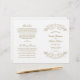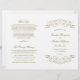 Decorative swirls and flourishes frame this elegant vintage inspired wedding ceremony program design. White background with antique gold design. Personalise the custom text for your bridal party, ceremony information, and thank you message. Note: these text weight paper programs arrive flat and require folding to assemble.