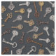 This fabric has hand-illustrated vintage and antique keys for safes and locks on a dark blue background.