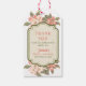 This beautiful apple blossom tag has a classic vintage feel. The tag features apple blossoms on the top and bottom of the decorative damask label. In the centre is decorative red text that reads "Thank You for Celebrating with Us". You can customise this tag with a name and date. The back of the tag has a coordinating green border with a white background for you to add a personal note.