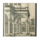 Vintage illustration architectural perspective drawing featuring a roman courtyard. Antique Renaissance Era sketch drawing by Henricus Hondius, from the book Manual on Perspective, 1622.