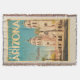 Original limited edition Vintage Republic design. This design features the Phoenix, Arizona St. Mary's Basilica in a faded pink color. The words Visit Arizona in a bold font are featured above the building within a blue sky.
