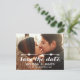 Cute Vintage Arrows with Hearts Save the Date Postcard. Elke Clarke© for Monogram Gallery. Bold, simple, modern white script text overlay. Fully customisable if you select "customise it". Replace the sample photo shown with your own engagement photo. Other colours available.
