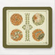 A beautiful abstract Art Deco design based on leaf shapes, created in Paris around 1900. This design originated from a copy held at The New York Public Library. The background colors have been changed and the original colors enhanced, which allows the overall design to become more prominent. Wonderful shades of green, including sage, fern, and forest green hold this design together. A lovely dark pumpkin red orange pops against a light creamy green background. There are pretty flowers among the leaves. This mouse pad will be the highlight of your work station.