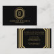 A glamourous faux gold frame containing your initials becomes an instant logo on this sleek black business card design. The vintage art deco aesthetic is perfect for interior designers, bloggers, stylists, boutiques, salons or any stylish professional looking for a luxe edge in their business. This double sided card allows ample space on the backside for your contact info and details. Art and design © 1201AM