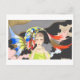 This postcard is a reproduction of a vintage Art Deco illustration showing a woman with a large and colourful fish.