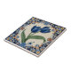 Vintage Art Nouveau Blue Tulips Floral Tile