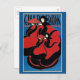 Vintage illustration art nouveau poster, The Chap Book Thanksgiving Number featuring two pilgrim women dressed in long flowing red and black capes carrying trays of food with a Thanksgiving feast. By artist William Bradley, 1895.