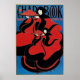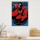 Vintage illustration art nouveau poster, The Chap Book Thanksgiving Number featuring two pilgrim women dressed in long flowing red and black capes carrying trays of food with a Thanksgiving feast. By artist William Bradley, 1895.