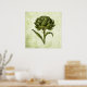 Vintage drawing of a globe artichoke in shades of green. Distressed green background. Beautiful gift for anyone who loves Mediterranean food, artichokes or cooking.