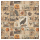 This fabric features a vintage-style collage of autumnal imagery, blending rustic charm with nostalgic ephemera. Arranged in a patchwork layout, it includes pumpkins, pinecones, feathers, oak leaves, birds, and antique-style postcards and sketches, all set in warm sepia and earthy tones. The textured look of aged paper and botanical illustrations creates a timeless aesthetic, perfect for fall décor, farmhouse style, and vintage-inspired theme.