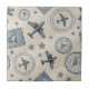 A classic seamless travel pattern ceramic tile featuring detailed vintage airplanes, passport stamps, stars, and navigation symbols in deep navy blue on a textured parchment background. The retro aviation aesthetic evokes wanderlust, adventure, and old-world travel charm. Ideal for frequent travelers, aviation enthusiasts, and vintage design lovers. A thoughtful gift for pilots, travel lovers, and explorers—perfect for birthdays, retirement celebrations, travel milestones, or everyday inspiration.