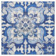 Vintage Azulejo Tile Floral Pattern in blue and white transported to the surface of Fabric, preserving its history and tradition. Azulejo is a form of Portuguese or Spanish painted, tin-glazed, ceramic tilework. It has become a typical aspect of Portuguese culture. Portugal imported azulejo tiles from Spain, and their use was widespread in religious and private architecture, particularly on facades.
