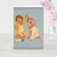 Retro / Vintage Baby Note Card. Adorable little girl putting a pink bonnet on her dog! Perfect for any occasion!