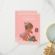 Elegant custom personalised vintage girl baby shower thank you card template for baby girls with a beautiful vintage illustration of a cute and adorable baby girl with stylish pink diaper and a pink bow in her hair with trailing ribbons. She is ringing you on an old red retro telephone to say thank you! She is holding a little suitcase and her quirky teddy bear is leaning against it - she's all packed up and ready for her arrival!! The background is a pretty pink with a classy pink chevrons border. Chic, trendy, glamourous, girly, fun, fashionable, whimsical, affordable personalised / personalised custom baby shower thank yous templates for baby girls. Decorated on both sides. The back / reverse side has the same design. Hand write your personal message on the back. Double sided printing / front and back. If you need any assistance customising your product please contact me through my store and I will be happy to help. PLEASE NOTE:- All invitations on Zazzle have flat printed images.