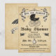 A vintage baby pram with decorative banner, finger pointing signs and pocket watch is perfect for a Victorian, Gothic, or steampunk inspired baby shower. Grunge paper background. The back of the card is also decorated with an old fashioned umberlla. Gender neutral. Customise with your own text. Please check my store for more like this.