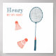 Vintage Badminton CUSTOM BABY NAME BIRTHDATE Art Poster