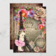 Vintage Paris baby shower invitation with pink rose, pearls, butterflies, adorable vintage baby ballerina in a tutu and Eiffel Tower on a beautiful vintage background. This vintage baby shower invitation is easily customised for your event by adding your details in the font style and colour, and wording of your choice.