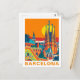 This vibrant retro postcard illustration of Barcelona, Spain. Inspired by 1960s European travel posters, the artwork uses clean lines and bold shapes to create a nostalgic vibe. A perfect gift or keepsake for lovers of architecture, design, and Spanish culture.