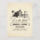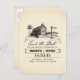 Vintage save the date postcards featuring old wooden barn house surrounded by rural landscape - trees, woods, road sign (with you wedding initials). Written in handwritten and bold vintage typography.