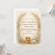 A charming countryside design featuring a fluffy calf, a sweet little lamb, and tiny yellow chicks nestled among soft meadow wildflowers. The warm parchment background and muted earth tones create a cosy, rustic atmosphere with a gentle storybook feel. Delicate greenery frames the layout while the farm animal illustration adds warmth and personality. Perfect for a neutral rural-themed celebration with classic farmhouse charm.