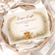 A charming countryside design featuring a fluffy calf, a sweet little lamb, and tiny yellow chicks nestled among soft meadow wildflowers. The warm parchment background and muted earth tones create a cozy, rustic atmosphere with a gentle storybook feel. Delicate greenery frames the layout while the farm animal illustration adds warmth and personality. Perfect for a neutral rural-themed celebration with classic farmhouse charm.