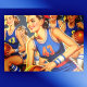Vintage Basketball Girls Illustration Postcard