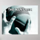 Featured is a cool digitally enhanced toned photograph of a basketball held and ready for a shot. "THE MAN CAVE " is printed in crude block letters. Colours include shades of blue, green, teal, turquoise, aqua, grey, black, and white. Great for any basketball fan, coach or player. Design has a faded, retro appearance.