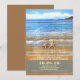 Old vintage rustic beach wedding invitations with starfish couples, blue sea and yacht. Perfect invite for destination, beach or coast wedding with old - fashioned design.