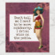 Fun kitschy drink coaster features vintage costumed beauty photo cutout with funny drinking wine outdoors quote on dark wine print background