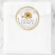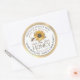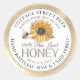 Central design features a vintage sunflower illustration and watercolor honeybee on white background. Gold gradient border. Personalise with your apiary name, address and honey description (raw, hand bottled, single source etc.). Also include your honey net weight. Common honey net weight conversions: 8oz (227g), 12oz (340g), 16oz (454g), 32oz (907g), 5lb (2.27kg).