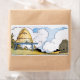 A happy straw beehive set in meadow with buzzing bees on a scenic vintage art farm landscape. Click Customise It to add your custom text, change label size and more, even save your design for later.