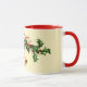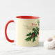 This is a digitally enhanced print of a vintage 1907 simple illustration of a bell, mistletoe and holly with berries wrapped with a ribbon. You can easily personalise the text and customise the background colour with this template.