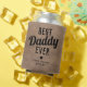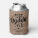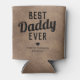 Personalised father's day can cooler for a special papa featuring a rustic vintage brown leather background, the text "best daddy ever", a cute heart, and the kids names. Plus a family photo for you to customise with your own to make this an extra special dad gift.