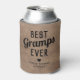 Personalised father's day can cooler for a grandfather featuring a rustic vintage brown leather background, the text "best gramps ever", a cute heart, and the grandchildrens names. Plus a family photo for you to customise with your own to make this an extra special grandpa gift.