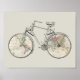 Vintage bicycle patent illustration with the wheels framing a map of the world. When you are on a bike, all the world's roads are open.