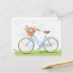 Hand drawn illustration of a blue Vintage bicycle with a basket full of flowers.