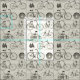 A pattern based on a modified illustration of various types of bicycles from a German encyclopaedia from around 1900.