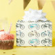 This wrapping paper features a tiled pattern of vintage bicycles. The pale yellow background can be customised as desired.