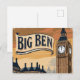 This vintage-inspired poster features a stylised depiction of Big Ben, London's iconic clock tower, with a warm, textured backdrop. The bold, classic typography reading "Big Ben" complements the retro design, evoking the feel of old-fashioned travel posters. The distressed texture gives the illustration a weathered look, enhancing its nostalgic appeal. The surrounding cityscape, rooftops, and swirling clouds add depth, making it an excellent piece for lovers of London, vintage art, or historical landmarks.