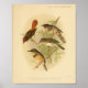 Vintage 1910 bird illustration. Yellow, red and brown birds sitting on a tree branch.