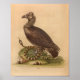 Vintage 1776 bird illustration from Gleanings of Natural History. Vulture on the ground holding a snake.
