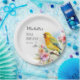 Pretty vintage 100th birthday party custom paper plates with a yellow canary singing in the branches of a tree blooming with spring flowers. Personalised with the name of the guest of honour, her age, and her party date. Contact me for assistance with your customisations or to request additional matching or coordinating Zazzle products for your celebration.
