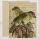 Design features vintage bronze olive colour cute birds sitting on branches, handwritten torn paper in the background.
