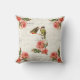 Two beautiful vintage birds perched on branches with pink roses are set on a light cream background with pretty handwriting and text from a vintage French shop receipt to make this pretty, nostalgic floral French and nature themed throw pillow romantic home decor.