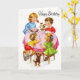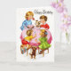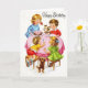 Vintage birthday card with children around a table with a birthday cake.