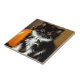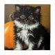 Tile featuring a vintage black and white Halloween cat! This spooky kitty is posing next to an orange pumpkin. A cute gift for Halloween parties and cat lovers!