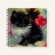 Notebook featuring a playful black and white kitten! This fluffy tuxedo cat poses amongst red flowers on a blue blanket. A superb gift for cat lovers and Victorian art enthusiasts!