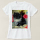 T-Shirt featuring a playful black and white kitten! This fluffy tuxedo cat poses amongst red flowers on a blue blanket. A superb gift for cat lovers and Victorian art enthusiasts!